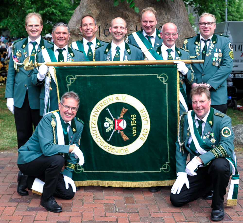 FahnenkompanieDieheutigeFahnenkompaniewurdzumMillenniumwechsel2000gegründet. AuchwenndieVereinsfahedesBürgerschützenvereinBadLaer von1543e.V.schonseitendeder70erJahre,vordenBadLaererSchützengetragenwurde,sosindsierund20Jahrespäterzueiner eigenen Kompanie zusammengekommen. Heute laufen sie mit der Vereinsfahne bei allen Anlässen vorne Weg. Kontakt:Gerd Bühreninfo@raumausstattung-buehren.de